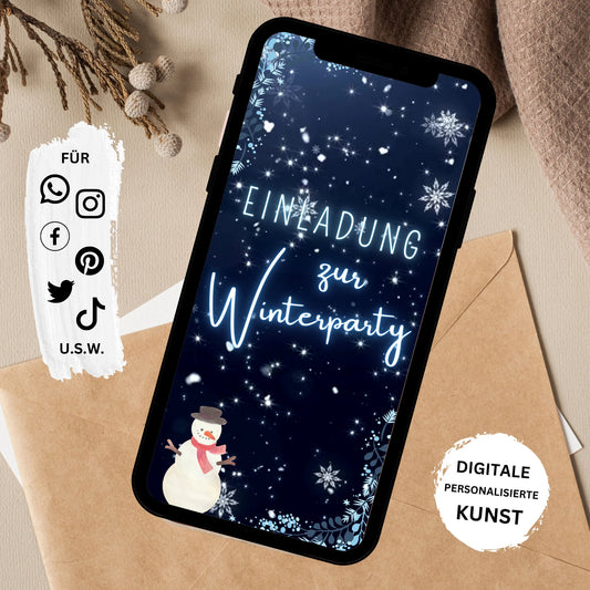 eCARD - Winter Geburtstagsparty Einladungskarte für WhatsApp