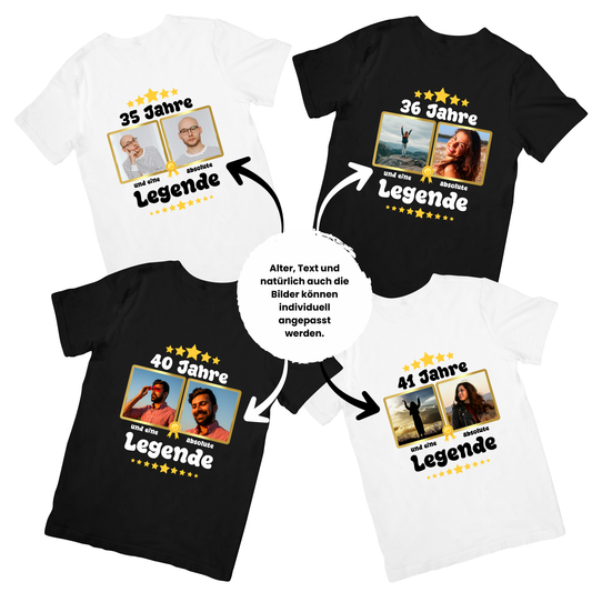 Party-T-Shirt zum 40. Geburtstag Legende mit 2 Fotos