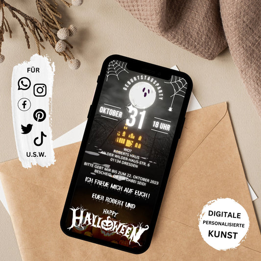 eCARD - Animierte Halloween Einladungskarte mit Raben