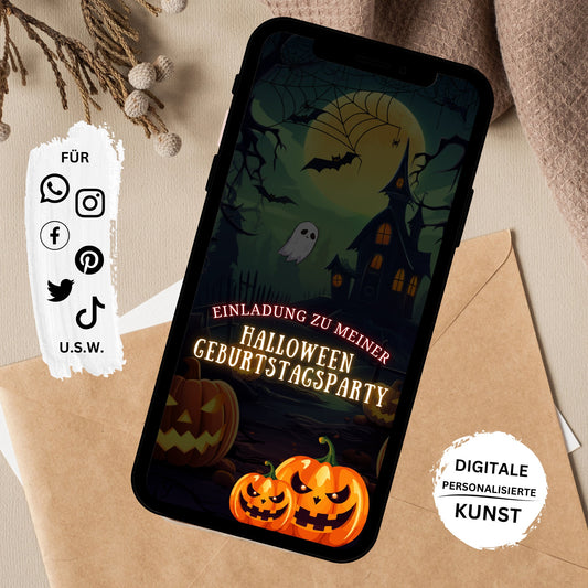 eCARD - Animierte Halloween Einladungskarte mit Baum