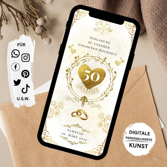 eCARD - Goldene digitale Geburtstagseinladung für WhatsApp