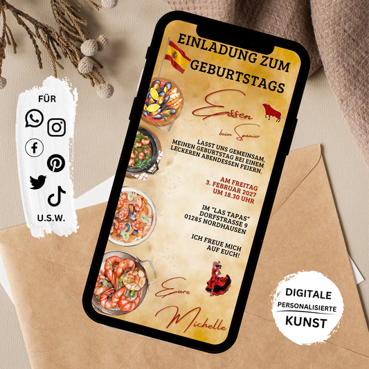 eCARD - Einladung Geburtstag Abendessen Spanier