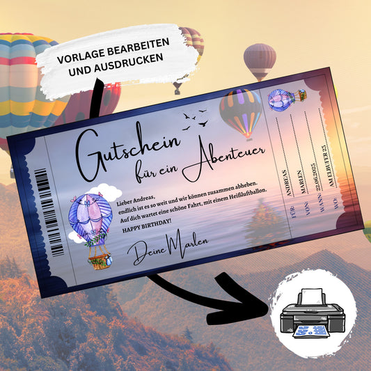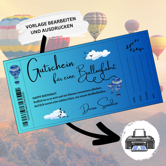 Gutschein - Ballonfahrt Heißluftballonfahrt Geschenkgutschein