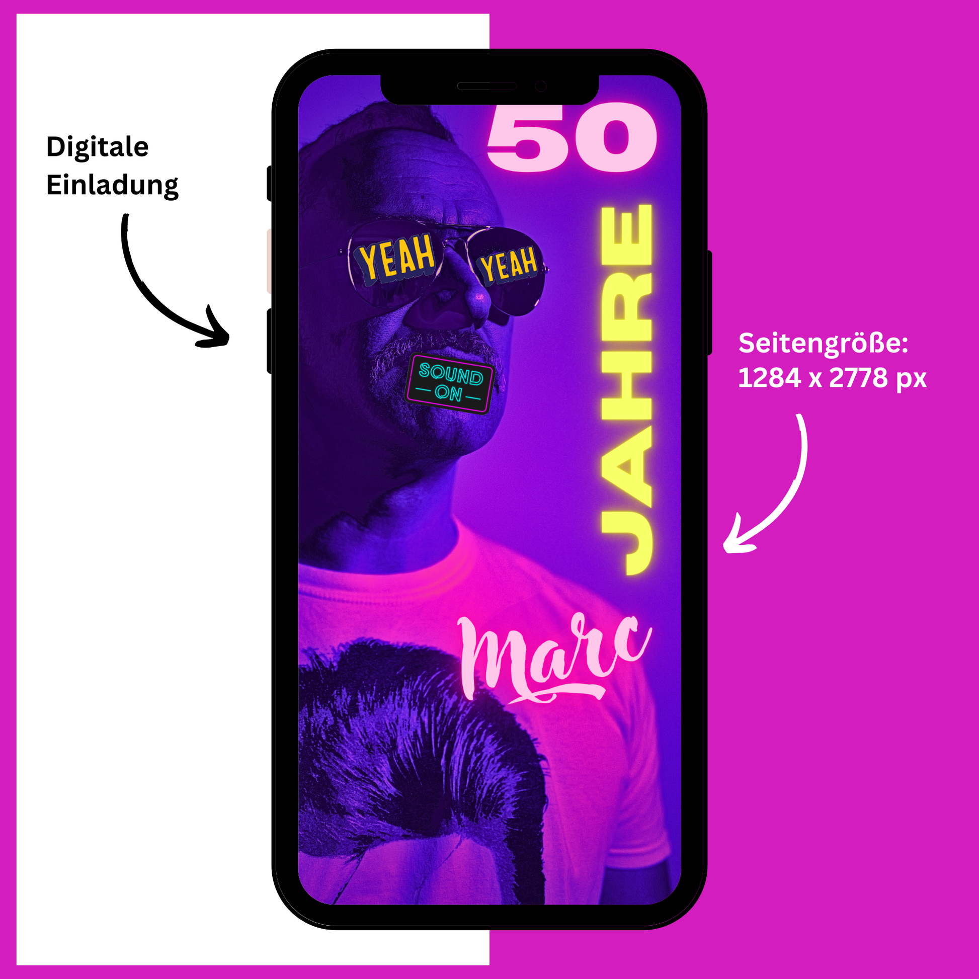 Einfach den QR-Code abscannen und du siehst 1 zu 1 wie die Einladung auf deinen Handy aussehen könnte.