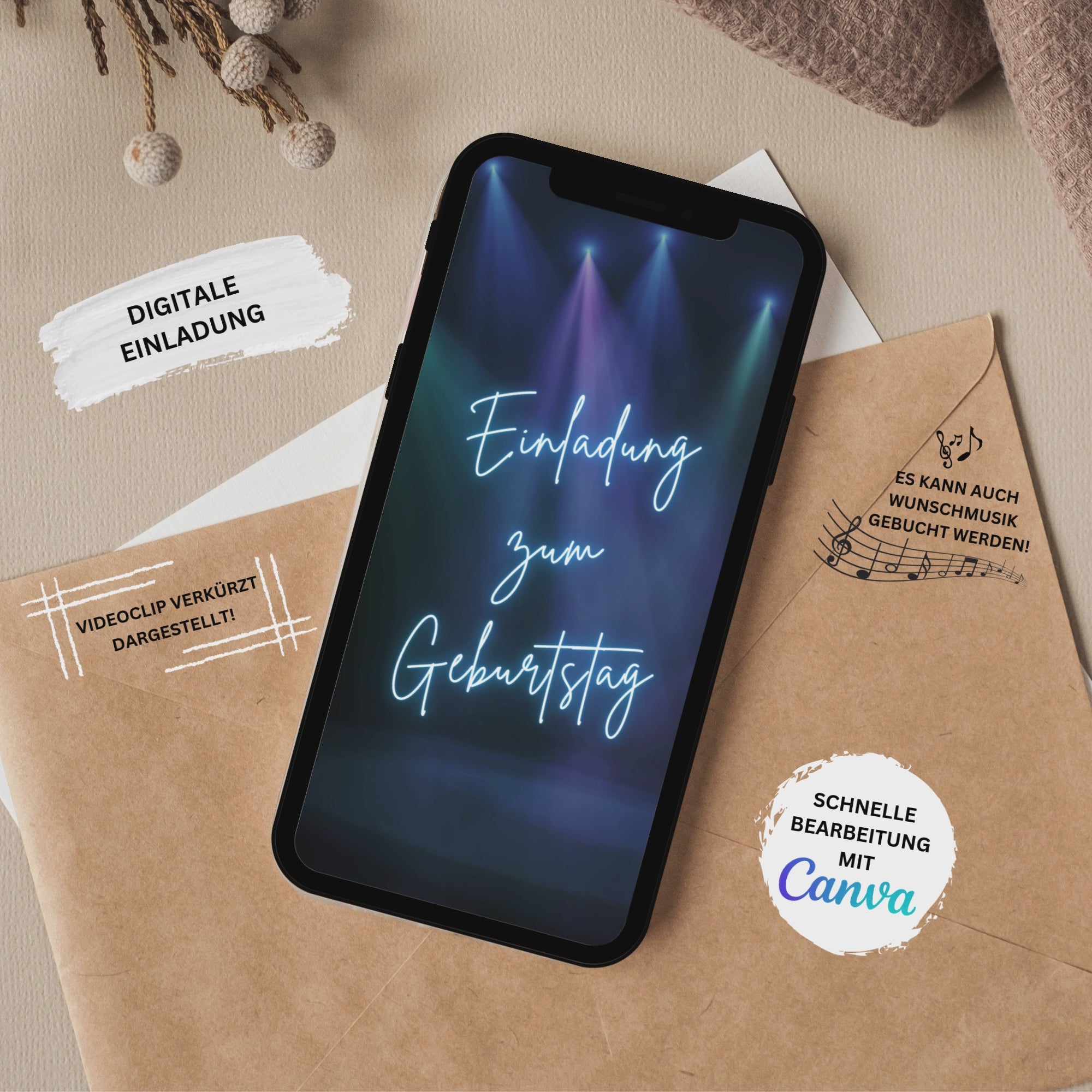 Coole animierte Einladungskarte die deine Freunde begeistern wird.