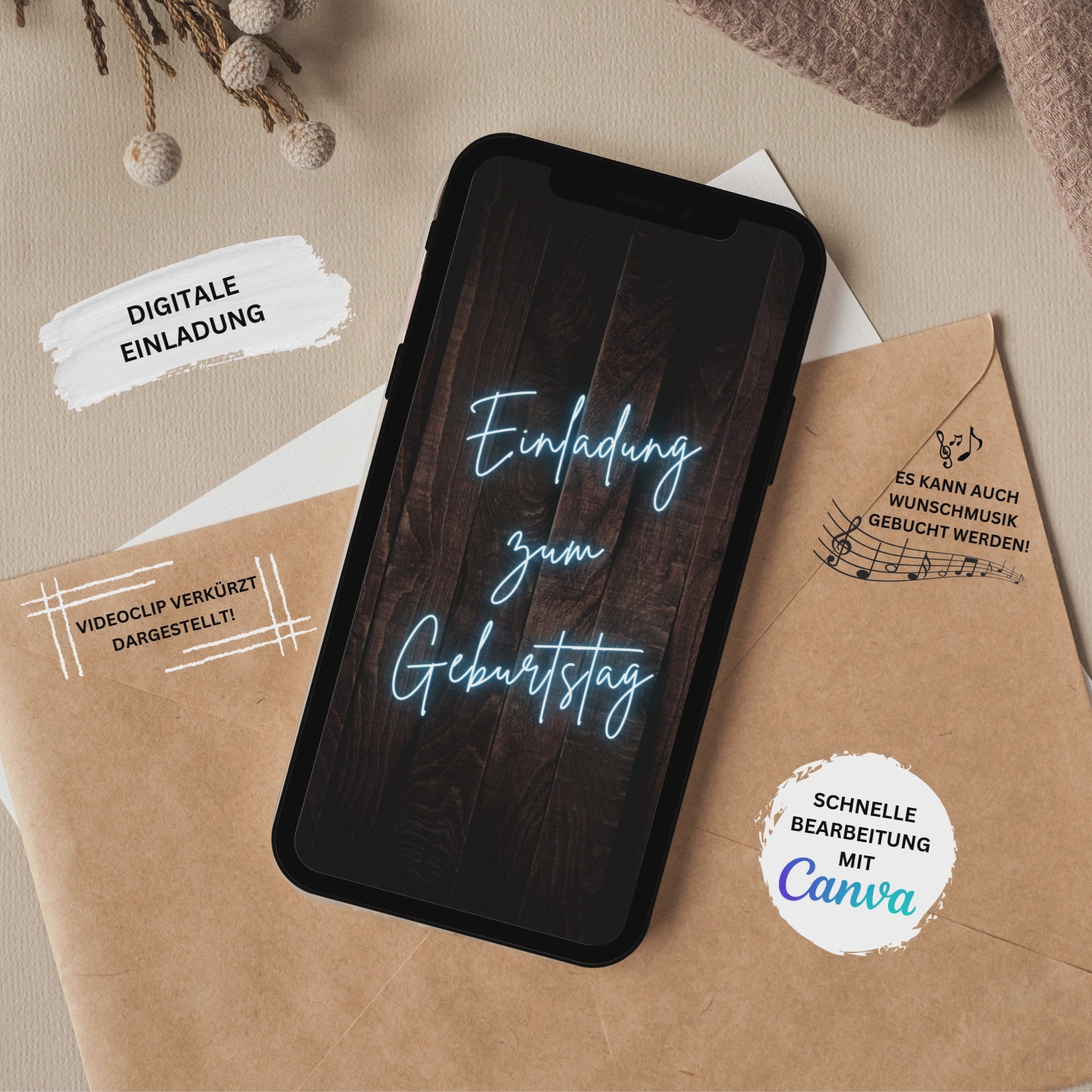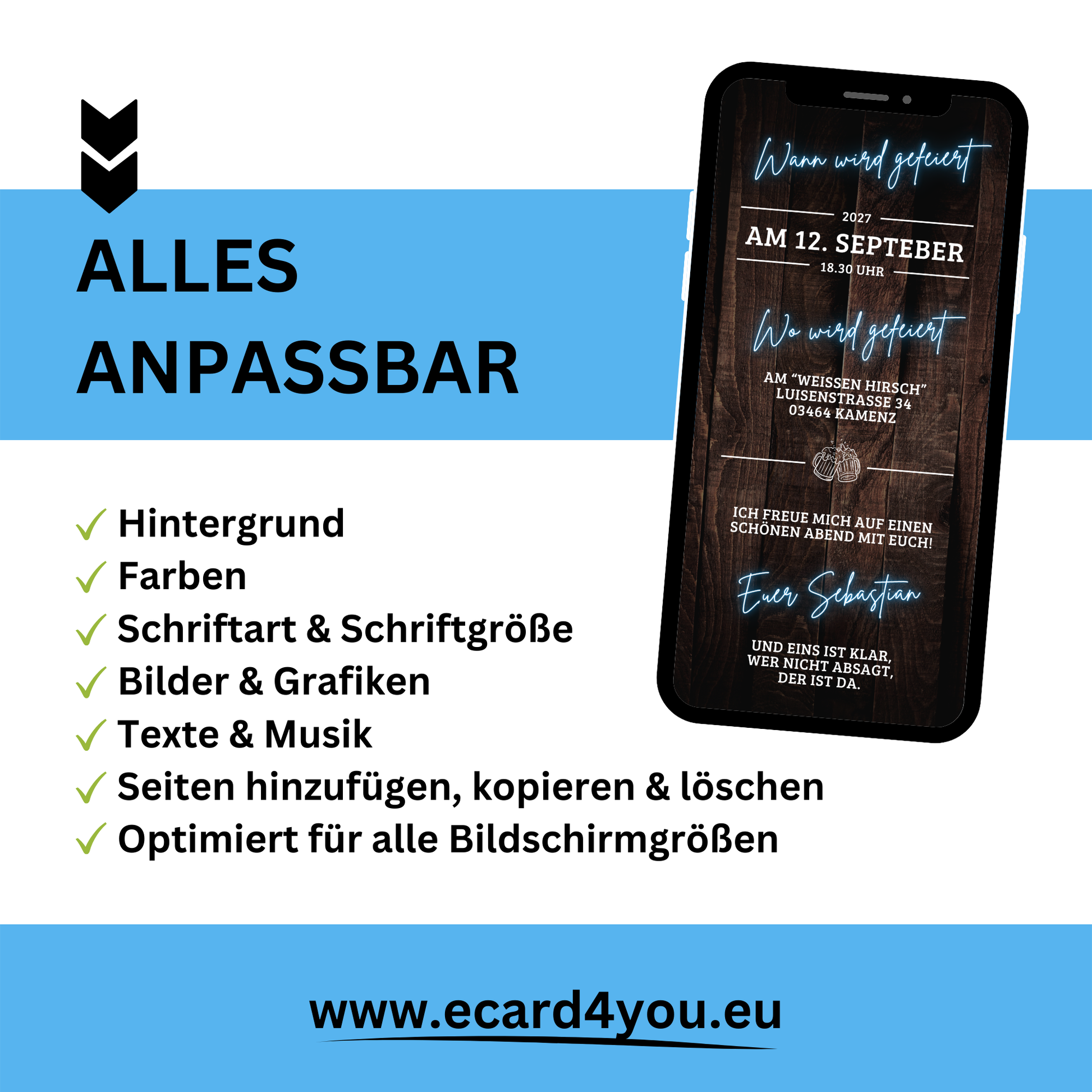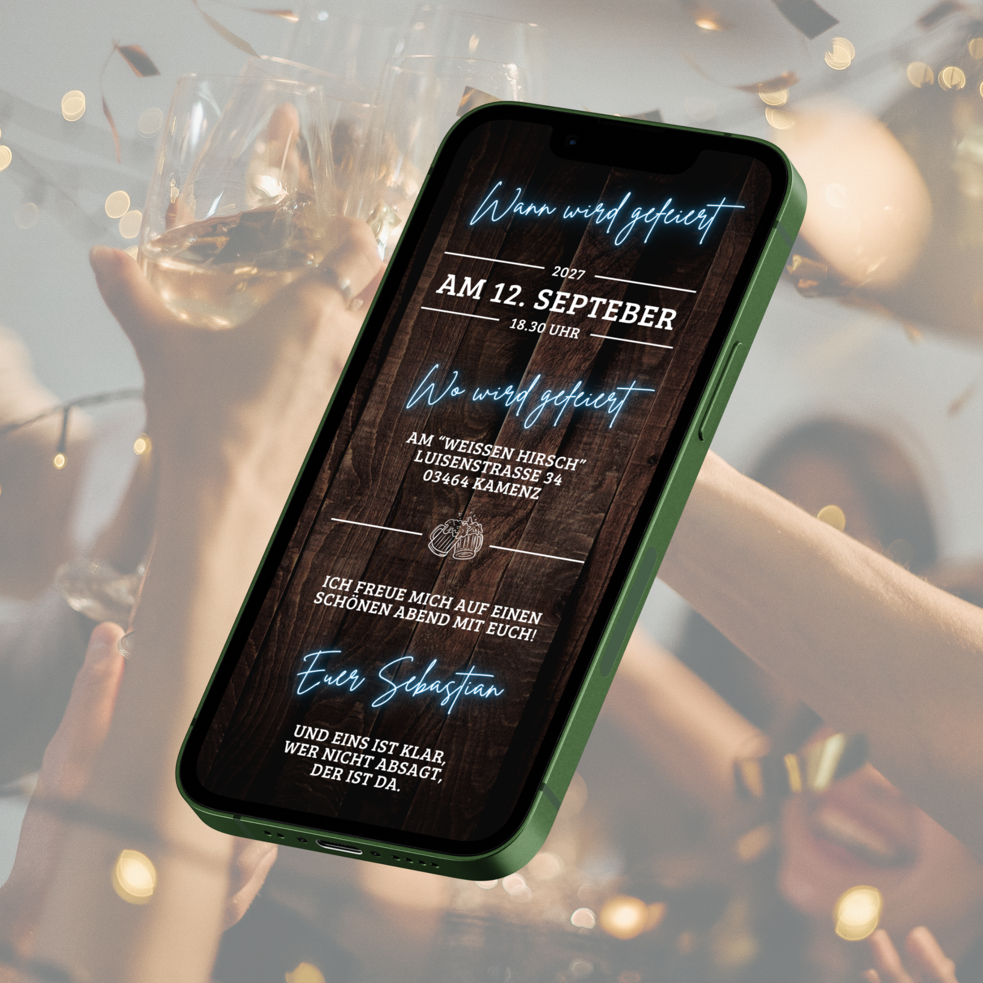 Coole animierte Einladungskarte die deine Freunde begeistern wird.