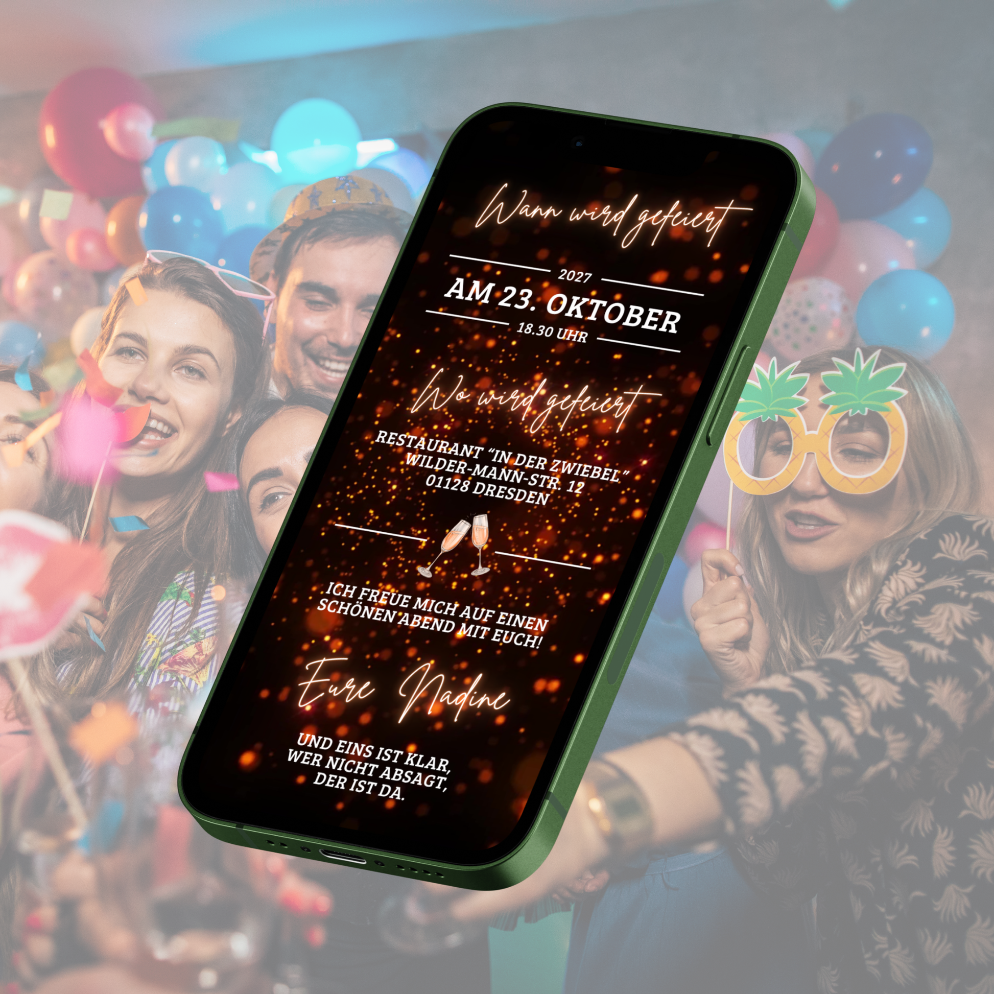 Mit dieser schönen Party Feier Einladung, liegst du voll im Trend der Zeit.
