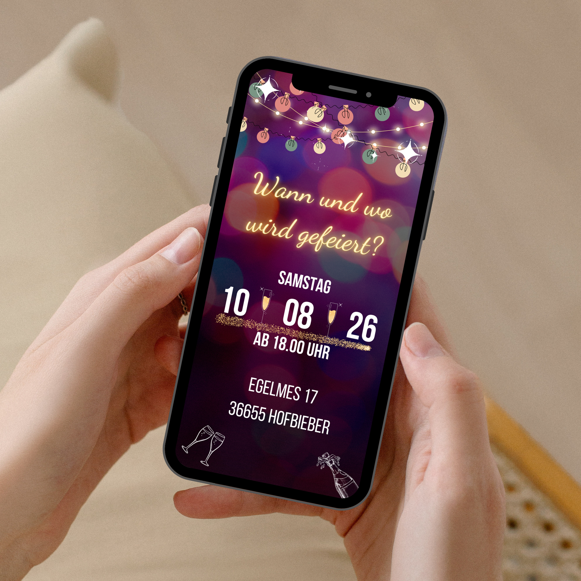 Coole animierte Einladungskarte die deine Freunde begeistern wird.