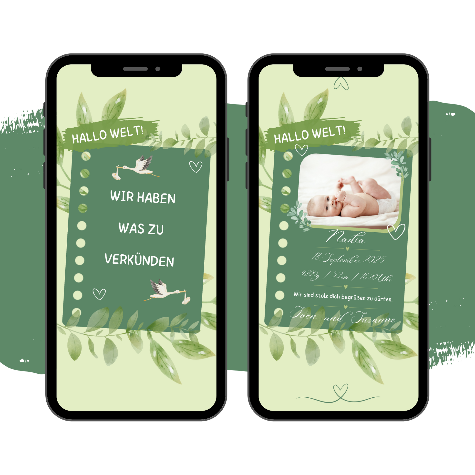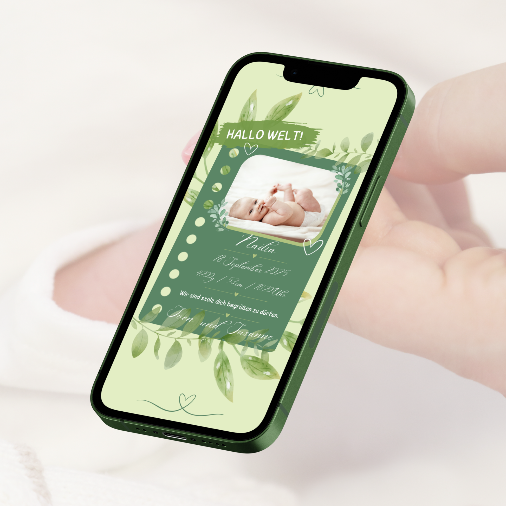 Hier findest du eine hübsche digitale Geburtsverkündung.