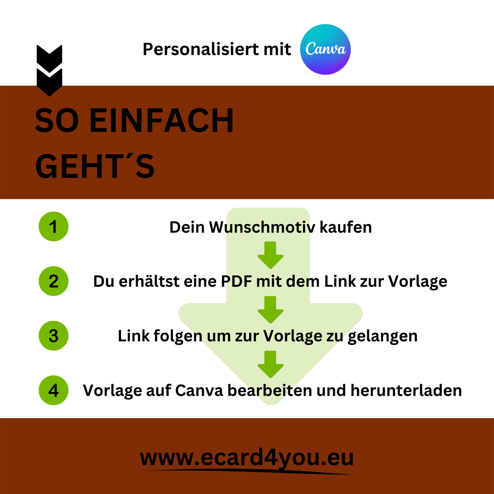 Nach dem Kauf der eCARD bekommst du eine PDF, die öffnest du, dann drückst du auf den Link und anschließend wirst du zu der Vorlage weitergeleitet.