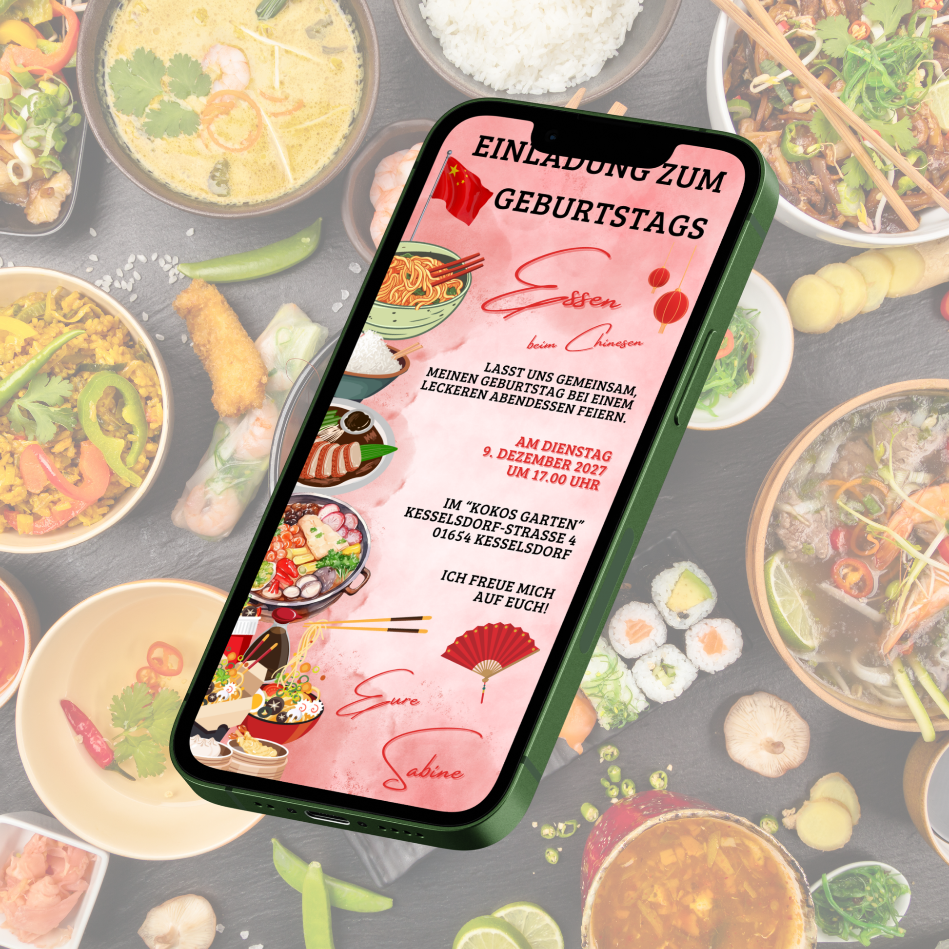 Du hast bald Geburtstag und suchst noch eine einfallsreiche Geburtstagseinladung, dann solltest du dir diese digitale Geburtstags Einladung für ein Abendessen beim Chinesen nicht entgehen lassen.