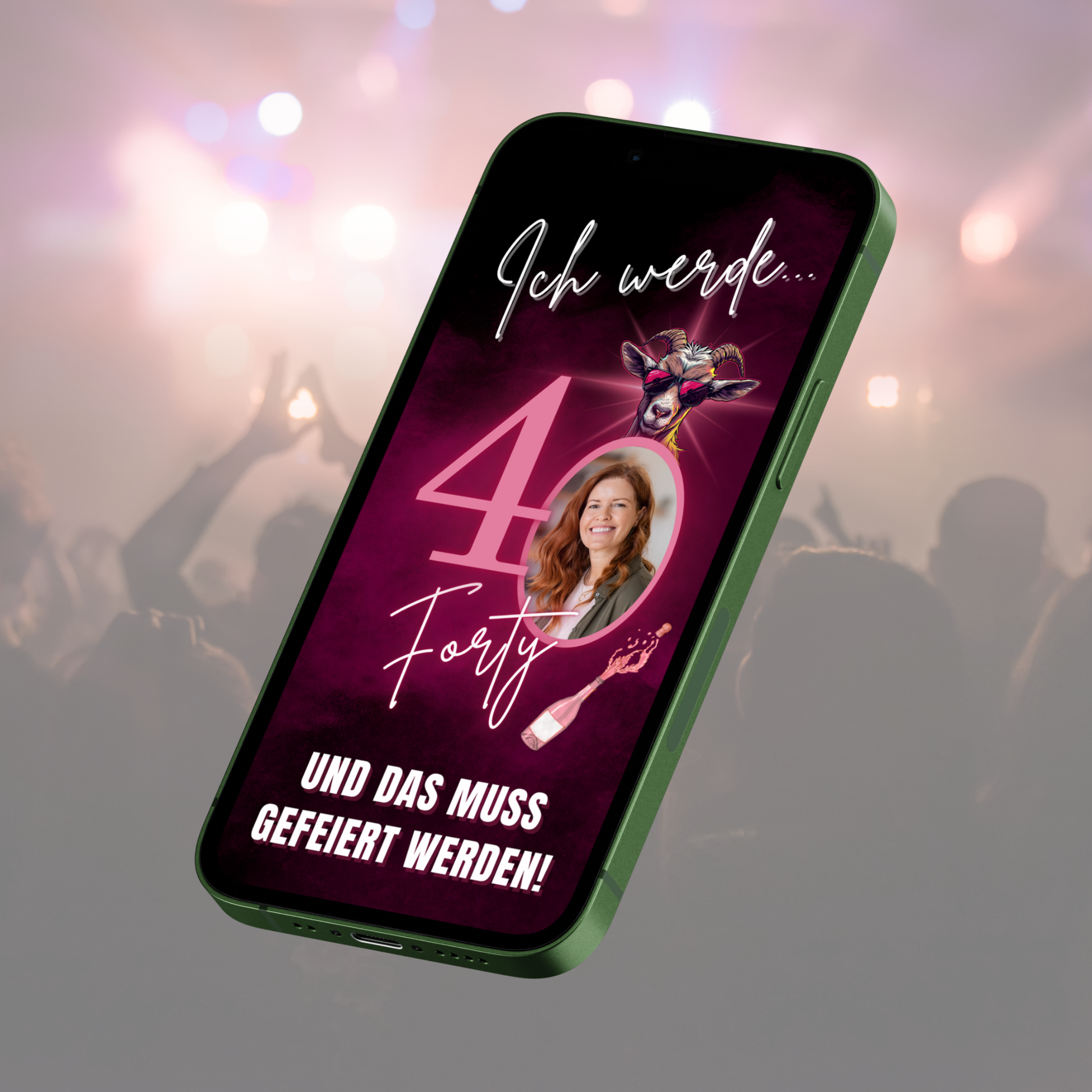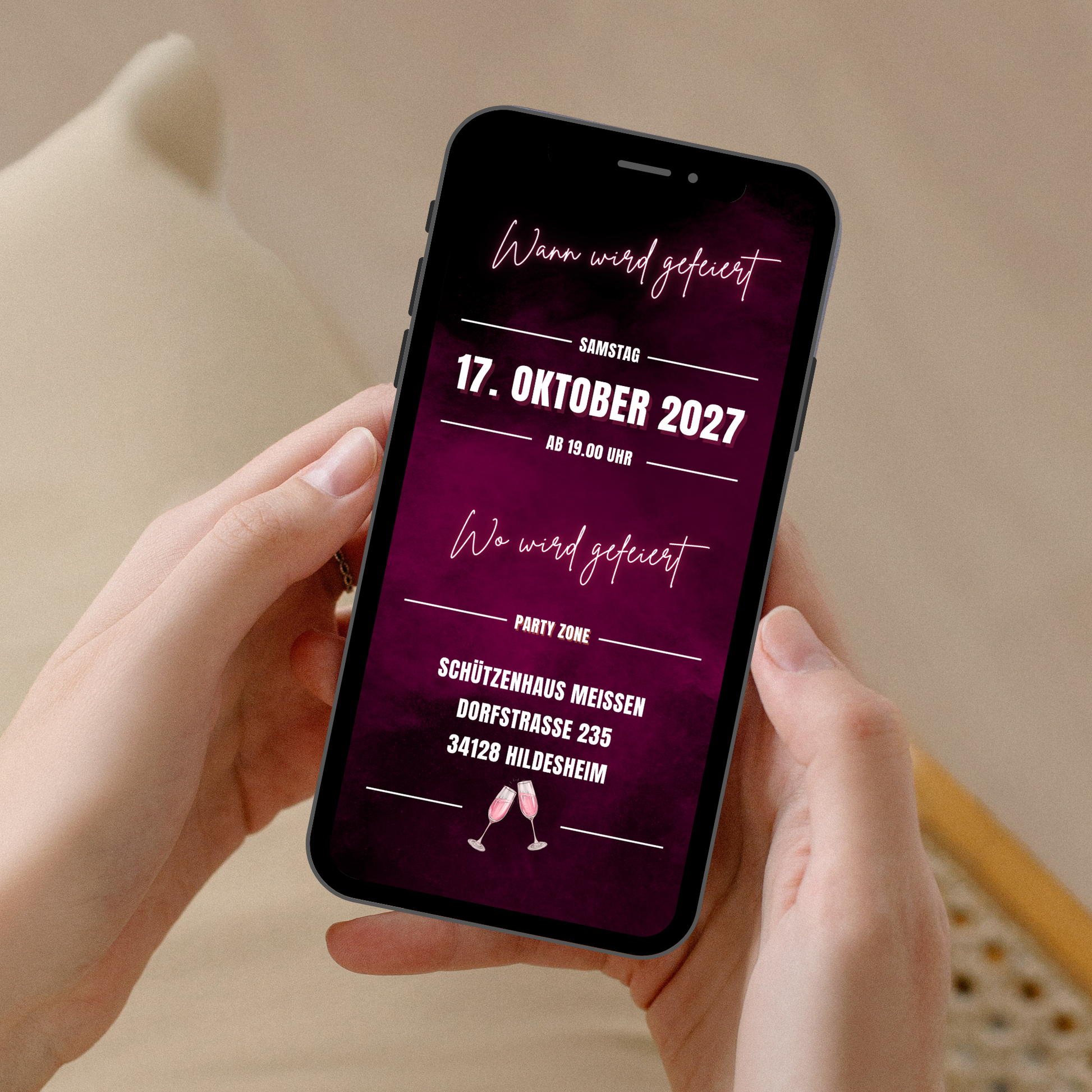 Egal, ob du 18, 20, 30, 40, 50 oder älter wirst, diese moderne Handyeinladungskarte ist zeitlos und