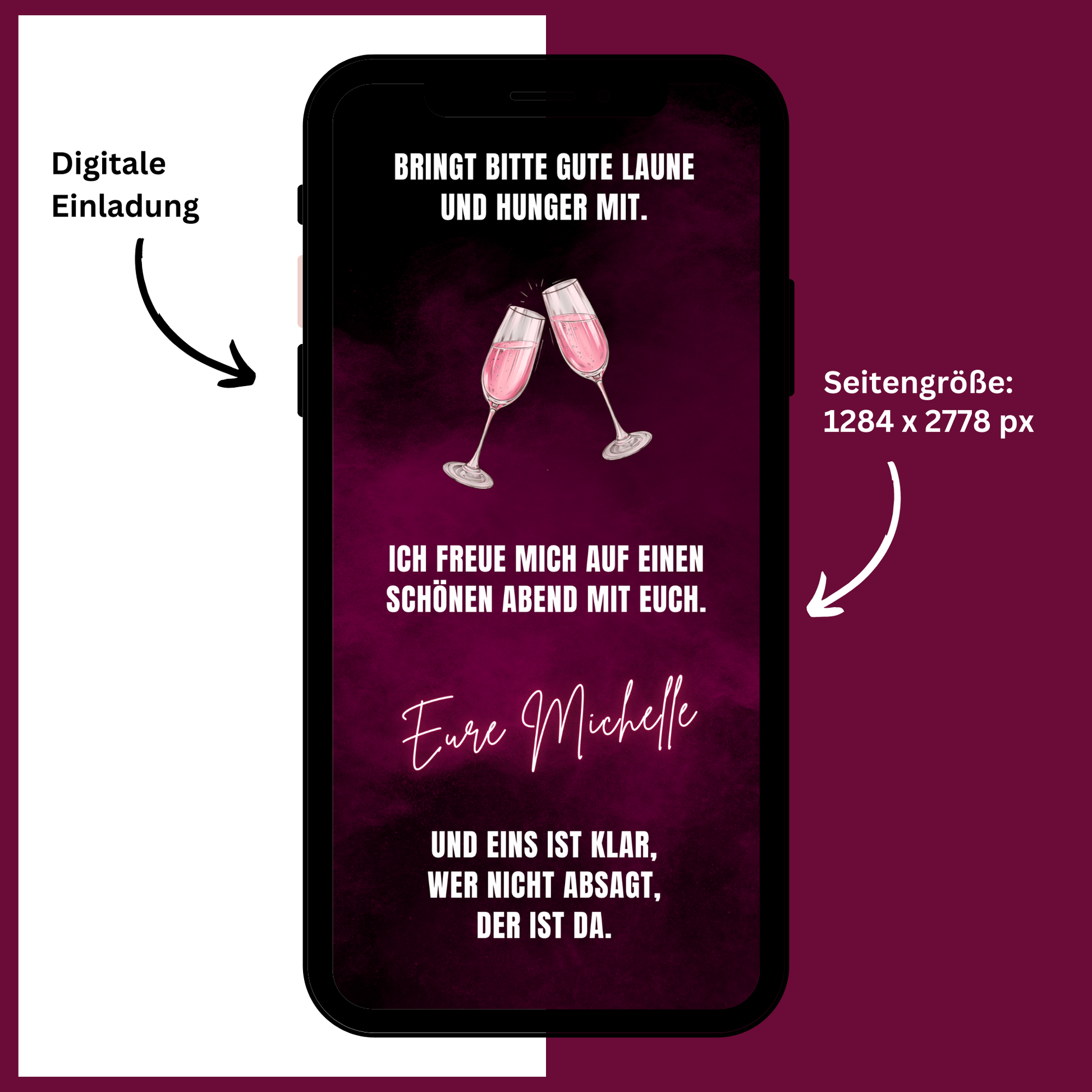 Einfach den QR-Code abscannen und du siehst 1 zu 1 wie die Einladung auf deinen Handy aussehen könnte.