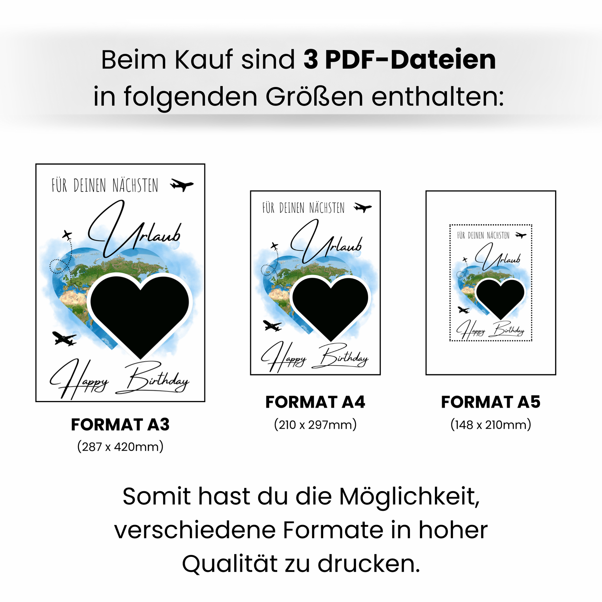 Überraschen Sie Ihre liebsten mit einem durchdachten Urlaubs Geldgeschenk, das Vorfreude auf das nächste Abenteuer weckt. Diese elegant gestaltete Geldgeschenkvorlage verbindet praktisches Schenken mit emotionaler Wertschätzung – ideal für Geburtstage & Weihnachten, wenn der Beschenkte bereits von seiner nächsten Reise träumt. Das ansprechende Design macht das Geldgeschenk für den nächsten Urlaub zu mehr als nur einer finanziellen Zuwendung: Es wird zur persönlichen Einladung, die Welt zu erkunden. Ob für eine Fernreise, einen Kurztrip oder das lang ersehnte Sabbatical – diese Vorlage unterstreicht, dass Sie nicht nur ein Geschenk geben, sondern aktiv an den Träumen des Beschenkten teilhaben. Perfekt für alle, die wissen, dass die wertvollsten Momente entstehen, wenn man neue Orte entdeckt und unvergessliche Erinnerungen schafft. Ein durchdachtes Geschenk, das Großzügigkeit und persönliche Aufmerksamkeit vereint.