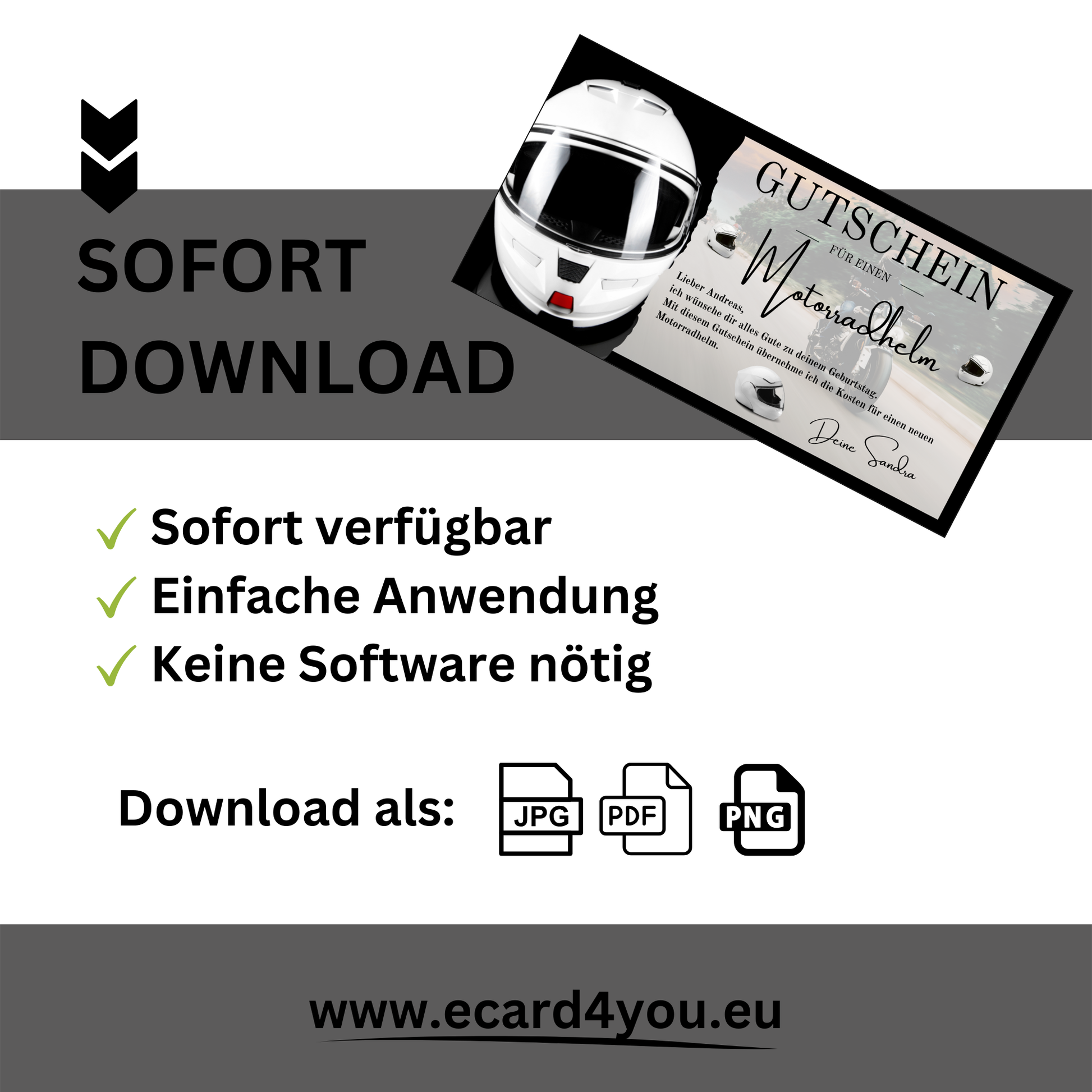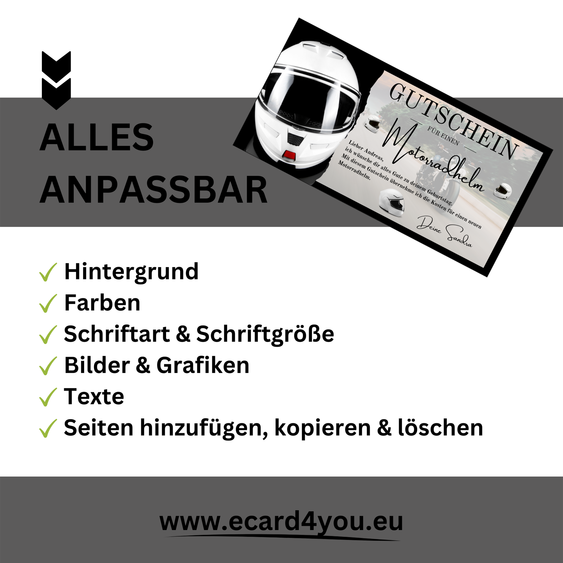 Du kannst den Geschenkgutschein für Motorrad Helm selber bearbeiten, herunterladen und drucken.