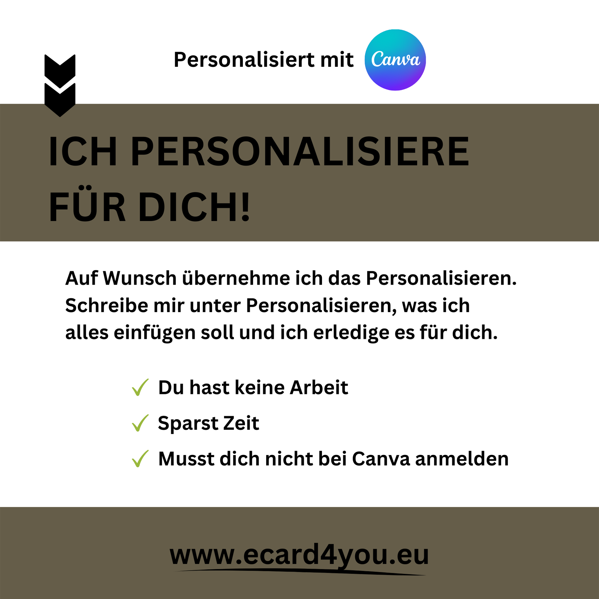 Bearbeite ganz einfach den Text, die Bilder und Grafiken in der Vorlage bei Canva und drucke anschließend die fertige Vorlage in unterschiedlichen Größen aus.